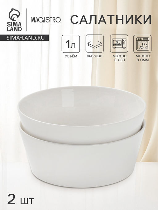 Набор Фарфоровых СалатниковПредставьте ваши салаты и гарниры в стильном виде с этим набором фарфоровых салатников. В комплект входят два круглых салатника объемом 1 литр, выполненные в классическом белом цвете. Идеально подходят для сервировки как горячих, так и холодных блюд, добавляя нотку элегантности в вашу кухню.Основные преимуществаНабор состоит из двух салатников, что удобно для сервировки различных блюд или для использования вдвоем.Изготовлены из высококачественного фарфора, обеспечивающего прочность, долговечность и элегантный внешний вид.Белый цвет и лаконичный дизайн позволяют легко сочетать салатники с любой другой посудой.Подходят для использования в микроволновой печи и мытья в посудомоечной машине, обеспечивая удобство в уходе.Изысканность и практичность в каждой деталиЭти фарфоровые салатники - это прекрасное сочетание элегантности и функциональности. Они идеально подойдут для подачи салатов, гарниров, закусок и многого другого. Добавьте нотку стиля в каждый прием пищи. Выбирайте качество и удобство для вашего дома. Набор: Да. Диаметр, см: 18. Объём, л: 1. В наборе, шт.: 2. Объём, мл: 1000. Тематика: Однотонная. Рисунок: Нет. Крышка: Нет. Можно мыть в посудомоечной машине: Да. Можно использовать в СВЧ-печи: Да. Текстура: Гладкая. Особенности: Без особенностей. Для горячего: Да. Бесплатная доставка: Да. Размеры товара: 18/7/18. Примечание: Оттенок данного товара может незначительно отличаться от фото/видеоизображения (в зависимости от настроек яркости вашего экрана)..