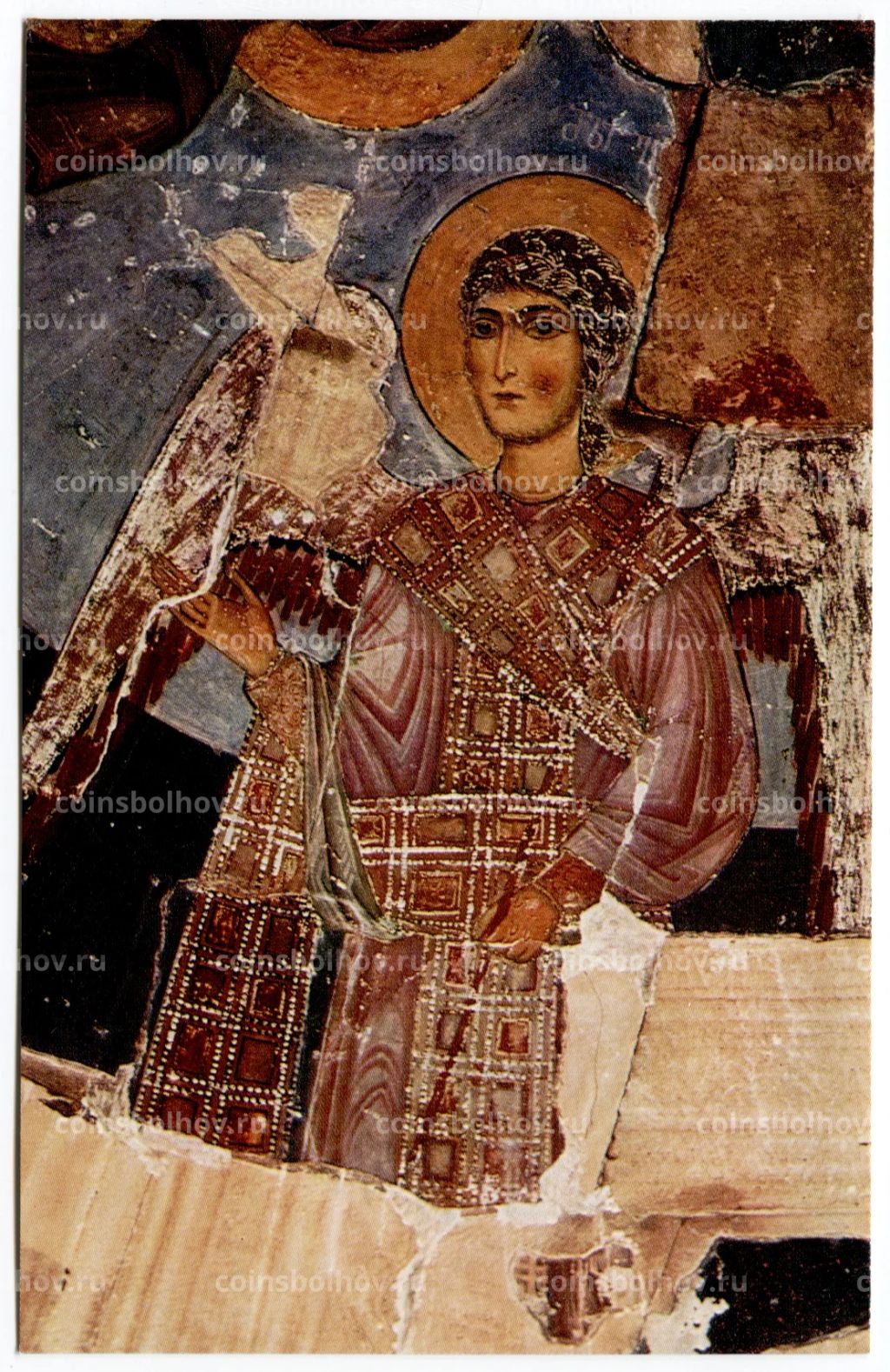 Открытка Грузинская ССР Храм Атени. Конха алтарной абсиды. Фреска Архангел