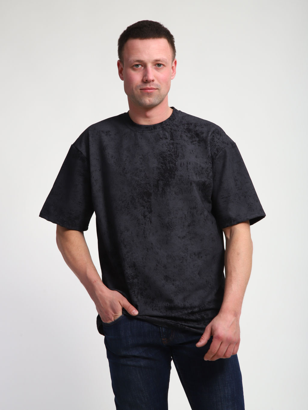 М460 Футболка оверсайз футер (черный винтаж)