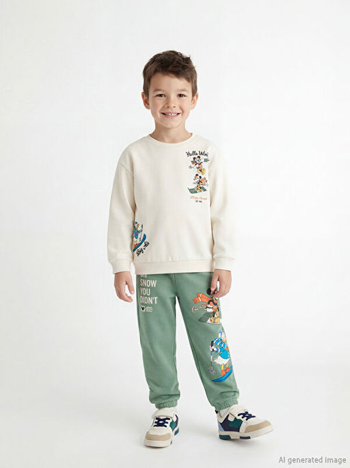 • Mickey Mouse Bask?l? Erkek ?ocuk Sweatshirt ve E?ofman Alt