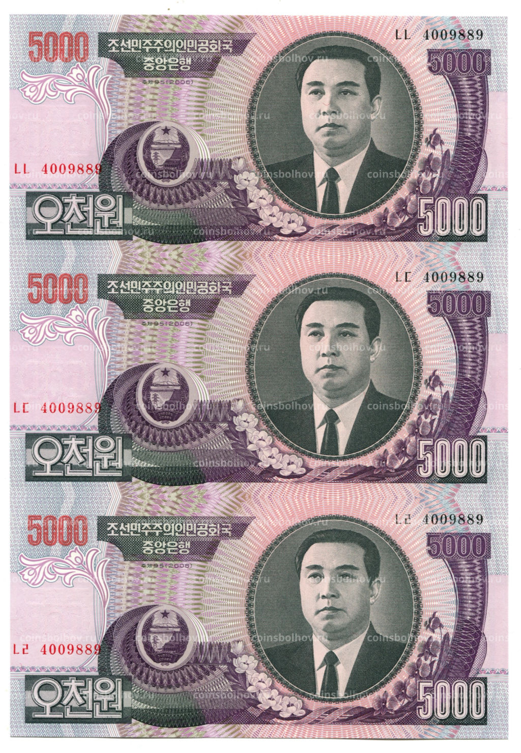 Банкнота 5000 вон 2006 года Северная Корея Лист из трех банкнот