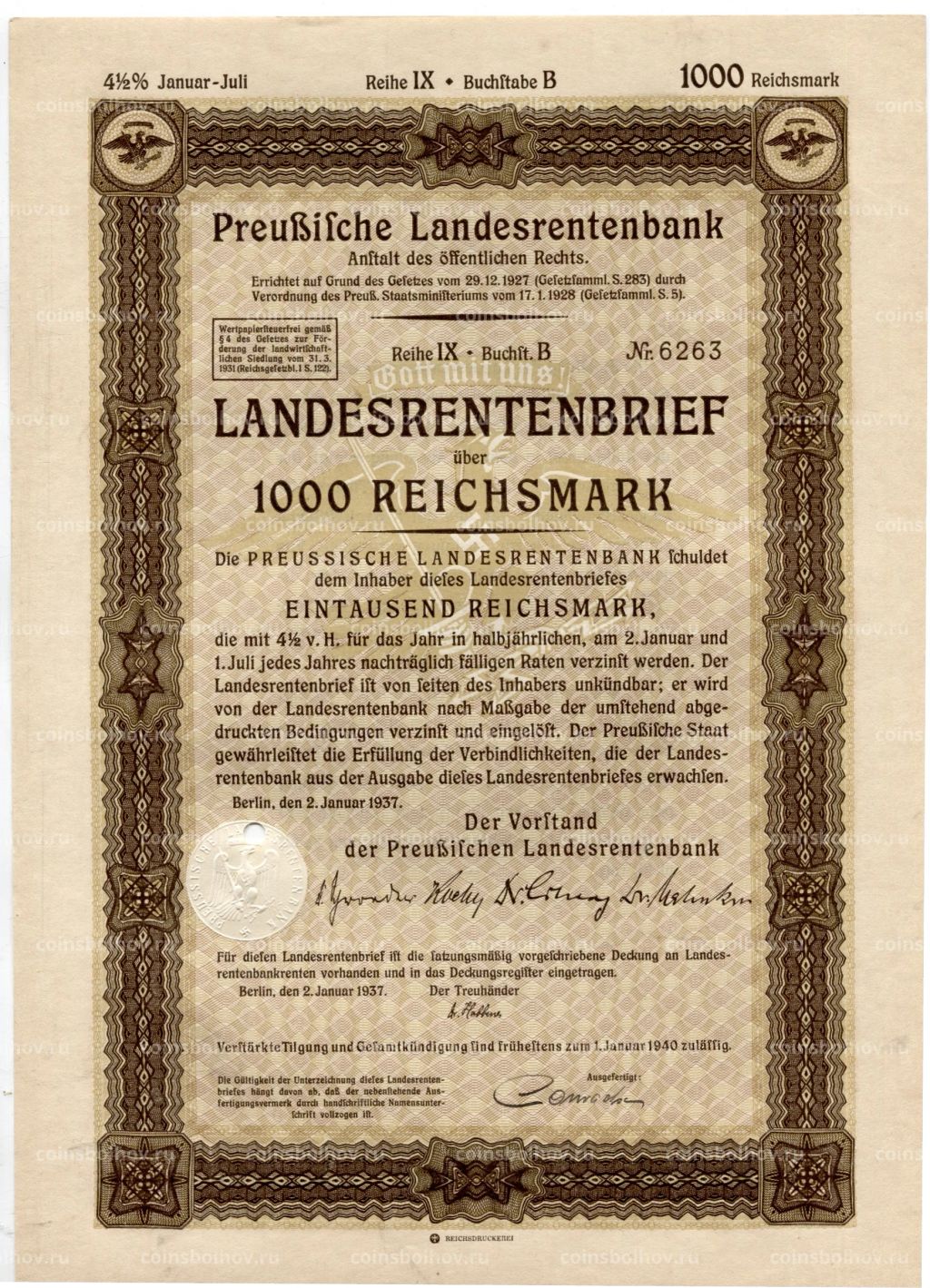 Облигация 4,5% 1000 рейхсмарок 1937 года Германия