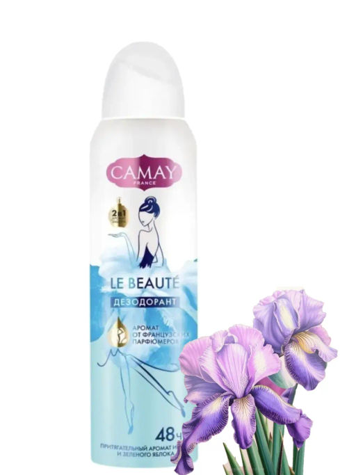 Дезодорант аэрозоль CAMAY Le Beautе 150 мл - это нежный соблазнительный летний аромат ириса и зеленого яблока, разработанный французскими парфюмерами. . Окунитесь в мир блаженства с притягательными, волнующими и соблазнительными ароматами, которые вряд ли оставят кого-то равнодушным находясь в одном окружении с Вами! Формула с изысканной парфюмерной композицией не содержит парабенов и этилового спирта, раскрывается на коже яркой палитрой ароматов, пробуждая романтическое настроение. Эффективен на протяжении 48 часов.