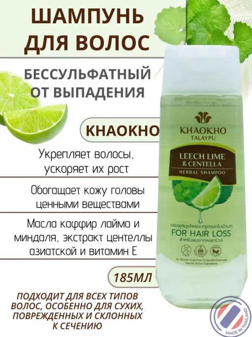 Шампунь Бессульфатный от Выпадения Каффир Лайм и Центелла KHAOKHO, 185 мл