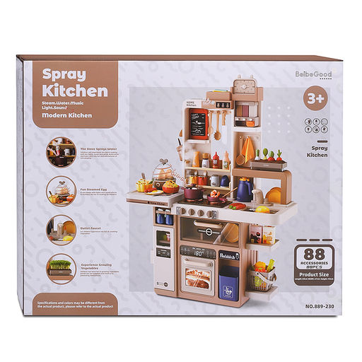 Описание товара Детская игровая кухня для девочек и мальчиков с легкостью увлечет ребенка атмосферой кулинарии и обучит полезным бытовым привычкам через игру с раннего возраста! В игровом наборе 88 предметов!