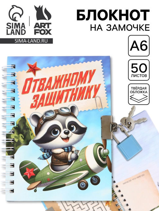 • Блокнот на замочке А6, 50 листов в твердой обложке Отважному защитнику