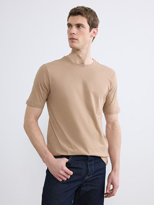 • Bisiklet Yaka Bask?l? Penye Erkek Ti??rt