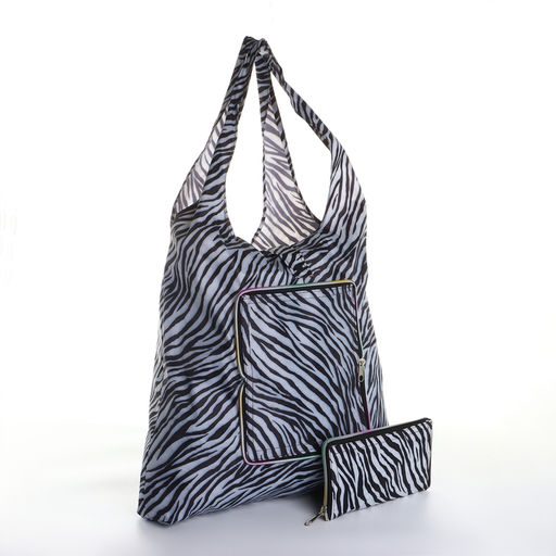 Сумка хозяйственная «Зебра» на кнопке, складная, чёрная, белая