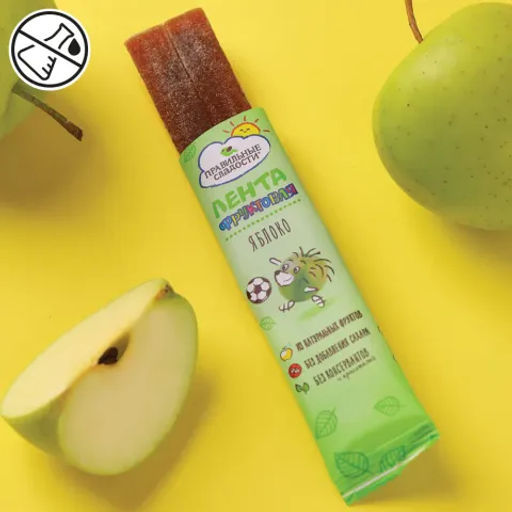 Фруктовая лента на основе натурального яблочного пюре без добавления сахара, пальмового масла, красителей и консервантов.