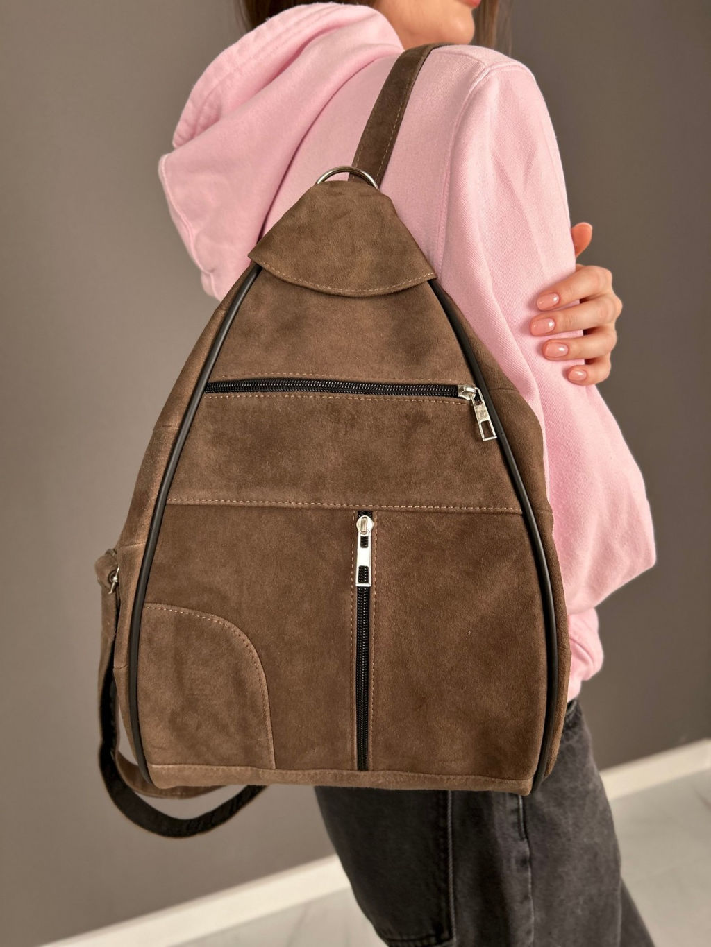 Классическая женская сумка-рюкзак из натуральной замши. Базовая коллекция , Sefaro.