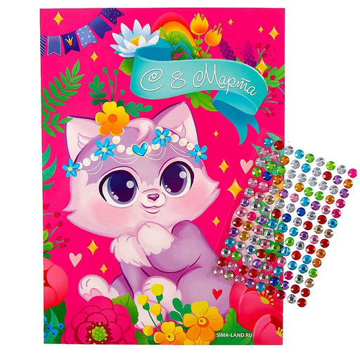 • Цена за 2 шт. Аппликация стразами для детей Котик. 8 марта, набор для творчества