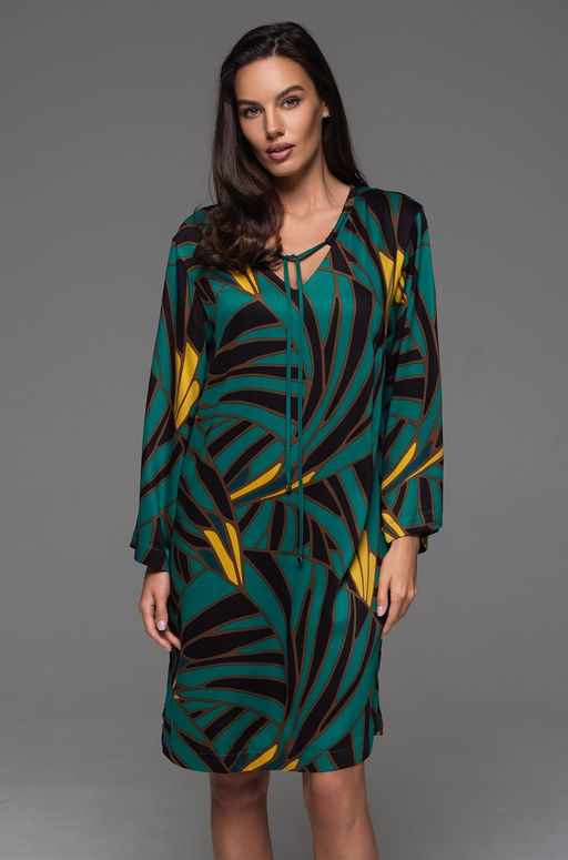 Короткая туника Mia-Amore свободного силуэта с длинным широким рукавом. Туника выполнена из принтованного натурального материала. По низу боковых швов расположены разрезы для свободы движения. По бокам обработаны карманы. Состав: 60% вискоза, 40% шёлк