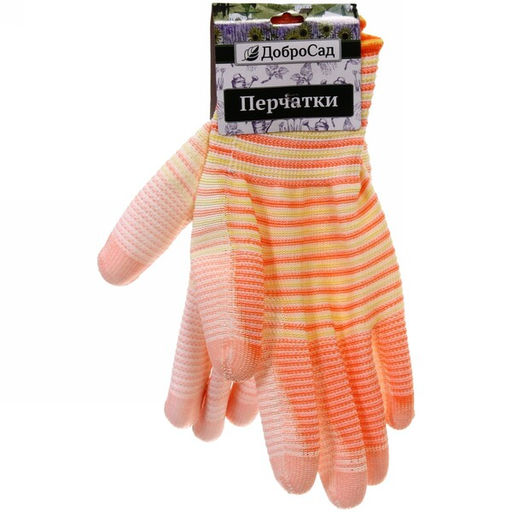 • Цена за 12 шт. Перчатки нейлоновые "Радуга" с ПВХ покрытием полуоблитые, оранжевые 8 р-р ДоброСад