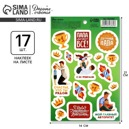 • Цена за 5 шт. Наклейки бумажные С 23 февраля, 14?21 см