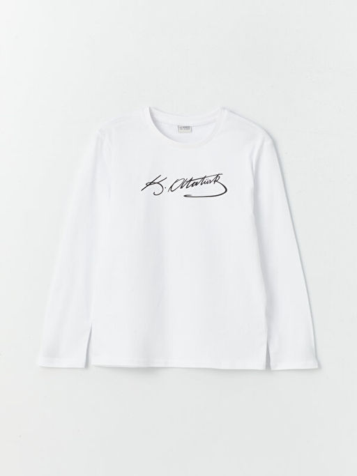 Bisiklet Yaka Atat?rk ?mza Bask?l? Uzun Kollu Erkek ?ocuk Ti??rt