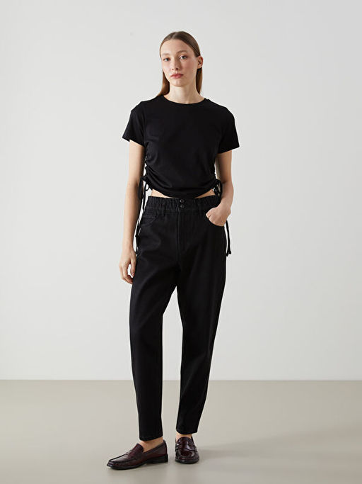 • Beli Lastikli Slouchy Fit Kad?n Jean Pantolon