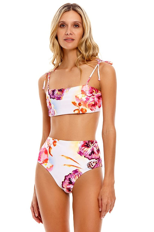 Топ 7594 Tabitha Oazze со съемными вкладышами и регулируемыми отстегивающимися бретелями. Украшен роскошным цветочным принтом и элементами ручной работы, вышивкой бисером стеклярусом. Выполнен из люксовой ткани, с тактильным эффектом гладкого и легкого шелка, которая быстро сохнет и сохраняет цвет. Можно носить как элемент курортной верхней одежды. Сочетаете с высокими плавками 7595 Alicia Oazze.­