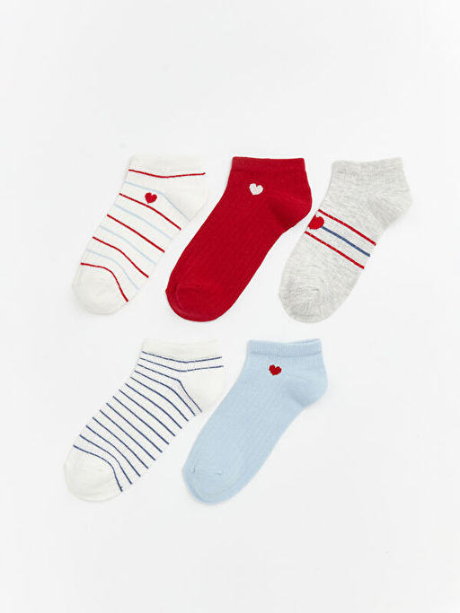 Kalp Desenli Kad?n Patik ?orap 5li