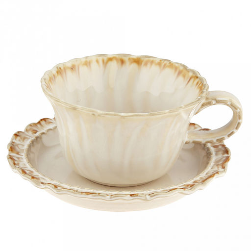 "Янтарь" Чашка фарфоровая 300мл, д11,2см, h6,5см, с блюдцем д15,5см, h2,4см, глянцевая глазурь, фигурная, с деколью, отводка (Китай)