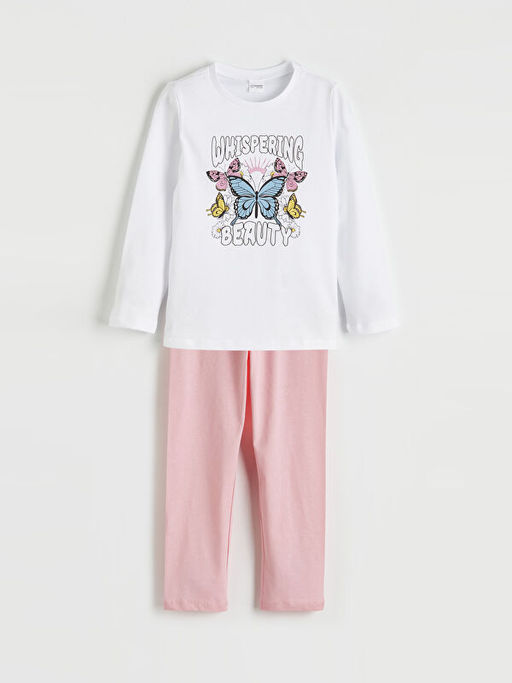 Bisiklet Yaka Bask?l? K?z ?ocuk Pijama Tak?m