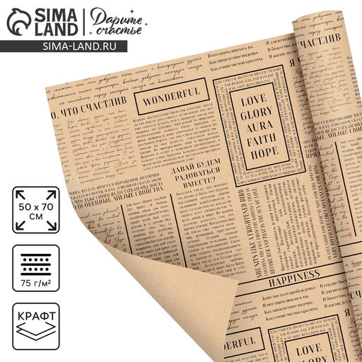 • Цена за 10 шт. Бумага упаковочная крафтовая «Газета», 50 х 70 см