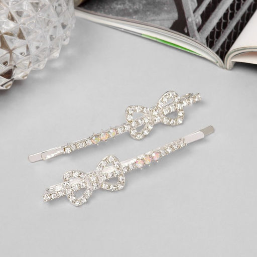 • Цена за 2 шт. Невидимки для волос «Эбба», набор 2 шт., бант, 6 см, серебро