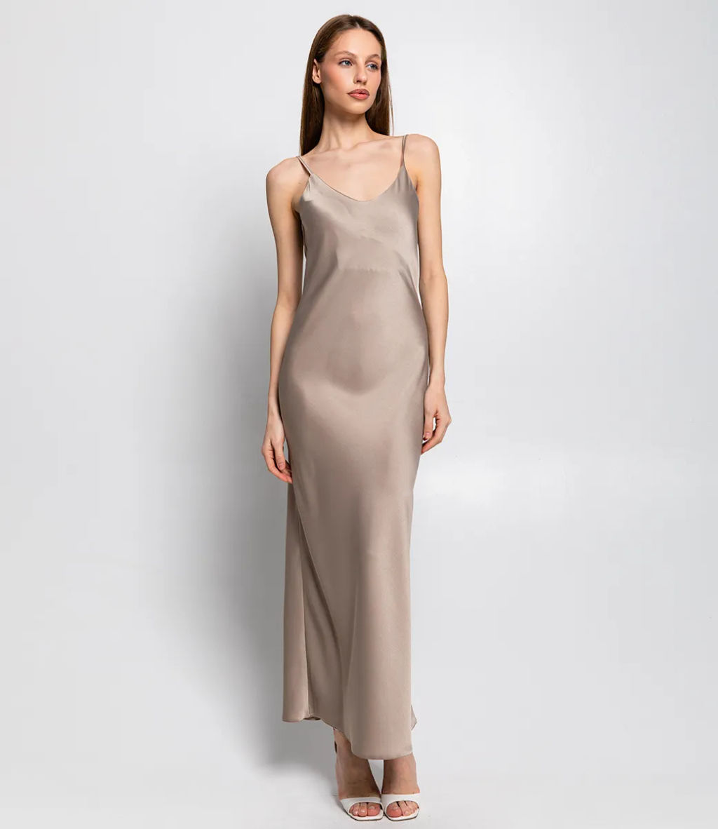 Длинное платье комбинация это всегда идеальный выбор для вечерних мероприятий или повседневного образа. Легкая ткань выгодно подчеркивает фигуру.­