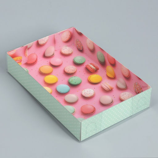 • Цена за 4 шт. Кондитерская упаковка, коробка для макарун с пластиковой крышкой, «Макаруны», 18 х 12 х 3.5 см