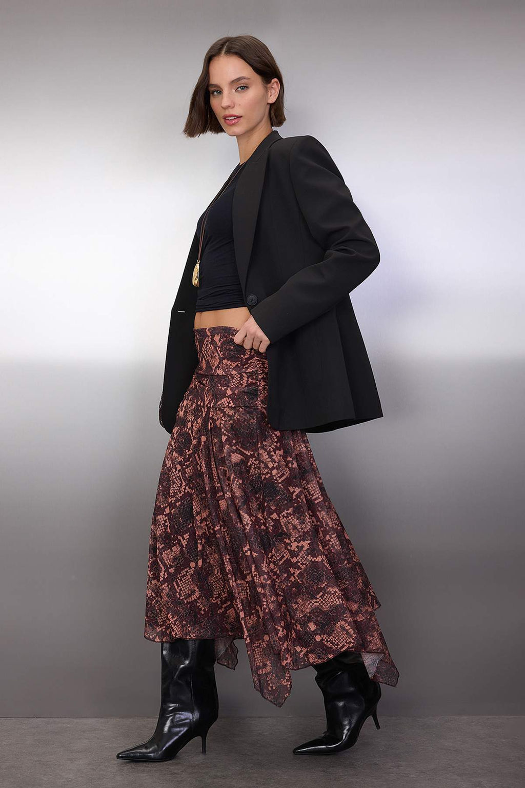 Bordo Boho Bask?l? Skater Asimetrik Etek Ucu Detayl? Esnek Orme Etek TWOAW26ET00037