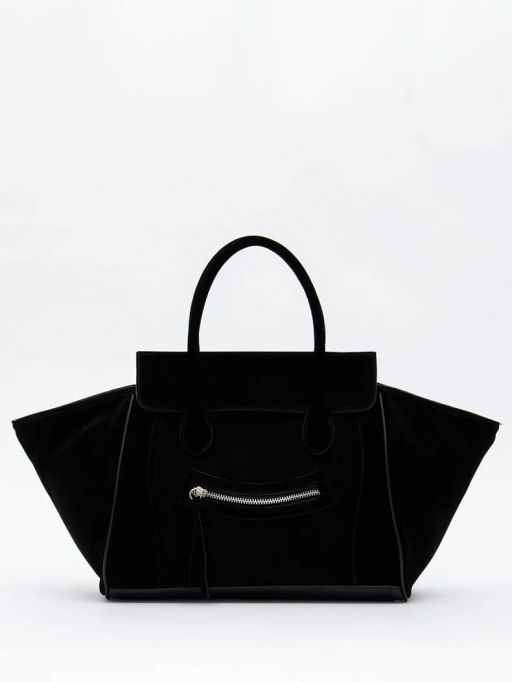Сумка-лодочка, выполнена из замши. Дополнена серебристой фурнитурой. Данная модель закрывается на клапан. Каркас полужесткий. Носится за встроенные ручки или на плече. В комплекте имеется ремень с регулировкой длины.