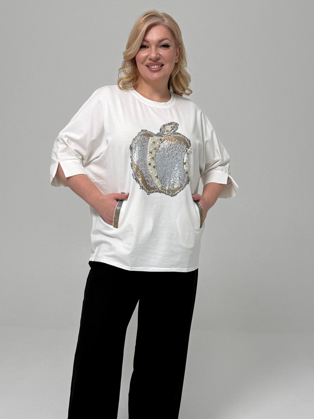 Туника с аппликацией "Яблоко" белая­