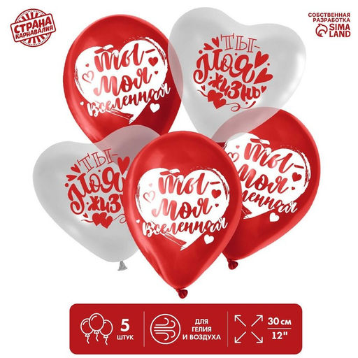 • Воздушные шары латексные 12" «Ты моя вселенная», 5 шт.