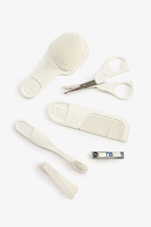 ВНИМАНИЕ! Это распродажный ассортимента поставщика (ликвидация склада). Распродажный ассортимент - это остатки коллекций, выставочные образцы с витрины, товары без упаковки, восстановленные или пользующиеся низким спросом изделия, а также продукция с незначительными дефектами внешнего вида (царапины, потертости и другие особенности). Обращаем ваше внимание, что продукция данной категории возврату и обмену не подлежит. Приобретая товары из распродажного ассортимента вы соглашаетесь на наличие дефектов во внешнем виде или упаковке. - -Набор принадлежностей для ухода за ребенком включает все необходимое для чистоты и гигиены вашего ребенка с головы до пят. В набор Mothercare входят расческа и щетка для волос с мягкими нейлоновыми щетинками и с закругленными концами, которые позволяют расчесывать волосики малыша, не причиняя ему боли. Маленькие ножницы для детских ноготков имеют закругленные края для безопасности и идеально подходят для маленьких пальчиков. Мягкая пилочка поможет сделать острый срез ногтя более гладким. В комплекте также имеется зубная щетка с мягкой щетиной, которая может использоваться для очищения десны ребенка, что поможет в будущем подготовить малыша к приучению чистки зубов. Детали: Набор принадлежностей для ухода за ребенком включает все необходимое для чистоты и гигиены вашего ребенка с головы до пят. В набор Mothercare входят расческа и щетка для волос с мягкими нейлоновыми щетинками и с закругленными концами, которые позволяют расчесывать волосики малыша, не причиняя ему боли. Маленькие ножницы для детских ноготков имеют закругленные края для безопасности и идеально подходят для маленьких пальчиков. Мягкая пилочка поможет сделать острый срез ногтя более гладким. В комплекте также имеется зубная щетка с мягкой щетиной, которая может использоваться для очищения десны ребенка, что поможет в будущем подготовить малыша к приучению чистки зубов. Бренд Mothercare Цвет Мультиколор Комплектация: 1 x щипчики для ногтей 1 x пилочка 1 x зубная щетка 1 x расческа 1 x щетка для волос 1 x ножницы Страна бренда Россия Страна производства Россия