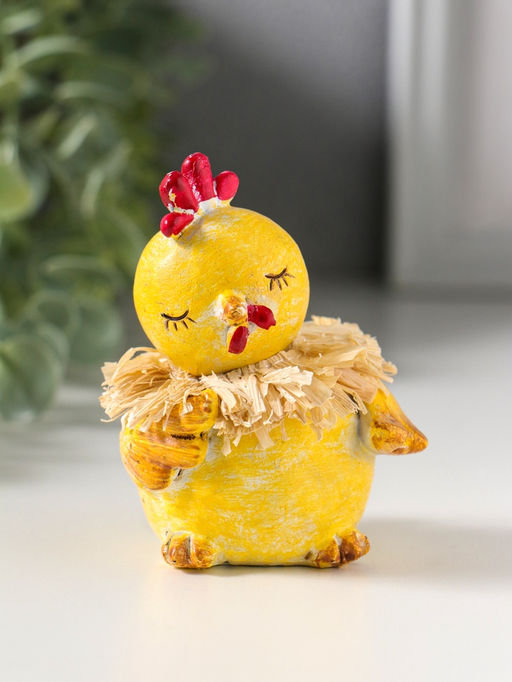 Этот пасхальный цыплёнок из полистоуна символ весеннего тепла и уюта в вашем доме. Фигурка с соломенным венком создаёт тёплую праздничную атмосферу, напоминая о пробуждении природы. Она станет сердцем пасхального декора на столе или полке, даря ощущение радости и обновления. Особенности * Фигурка цыплёнка традиционного жёлтого цвета с детализированным соломенным венком. * Компактный размер 7x7x8 см позволяет разместить её в любом уголке интерьера. * Универсальная тематика подходит для праздника Пасхи и создания весеннего настроения круглый год. * Материал полистоун обеспечивает высокую детализацию, приятную текстуру и долговечность. * Интересное оформление делает фигурку яркой и выразительной даже на расстоянии. Идея для подарка и декора Фигурка готовый акцент для пасхальной композиции. Она дополнит украшение праздничного стола, станет милым подарком, символизирующим начало весны. Прочность полистоуна позволяет ей годами сохранять свой вид, становясь семейным атрибутом, который достают из коробки с праздничными украшениями каждую весну. Это инвестиция в создание особой, тёплой атмосферы в вашем доме.