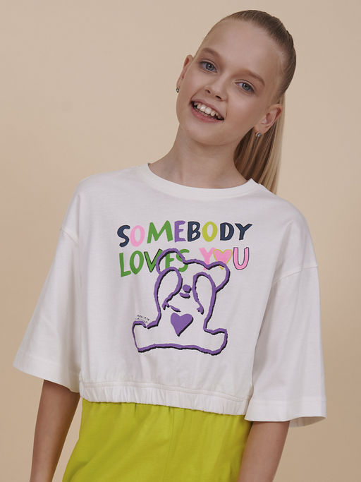 Укороченная футболка для девочки с коротким рукавом. Кроп топ свободного прямого кроя и актуальный оверсайз силуэт делают детский джемпер невероятно модным и удобным. По низу изделия резинка. Яркая и стильная вещь с принтом, излучающим любовь, охладит в жаркую погоду пропуская воздух. Можно надевать под ветровку как весенний вариант, под тонкую жилетку как летний или в качестве самостоятельного элемента гардероба девочек для создания многослойного образа. Объемная короткая кофта самая уютная вещь на весну и на лето. Базовая вещь в гардеробе стильного малыша. Благодаря уникальному крою, комфортно подойдет для любой фигуры девушки, для высоких и невысоких детей. Мягкая трикотажная блузка подойдет на улицу для прогулок, отдыха на природе, путешествий, посещение кружков и секций, на танцы и хип-хопа, занятия спортом, как домашняя одежда для дома и повседневный вариант. Станет самой любимым и востребованным в гардеробе ребенка. Размерная линейка: 3 (98); 4 (104); 5 (110); 6 (116); 7 (122); 8 (128); 9 (134); 10 (140); 11 (146). Выбирайте нужный размер по таблице размеров на фото. Цвет товара на экране вашего устройства может отличаться от цвета изделия вживую.