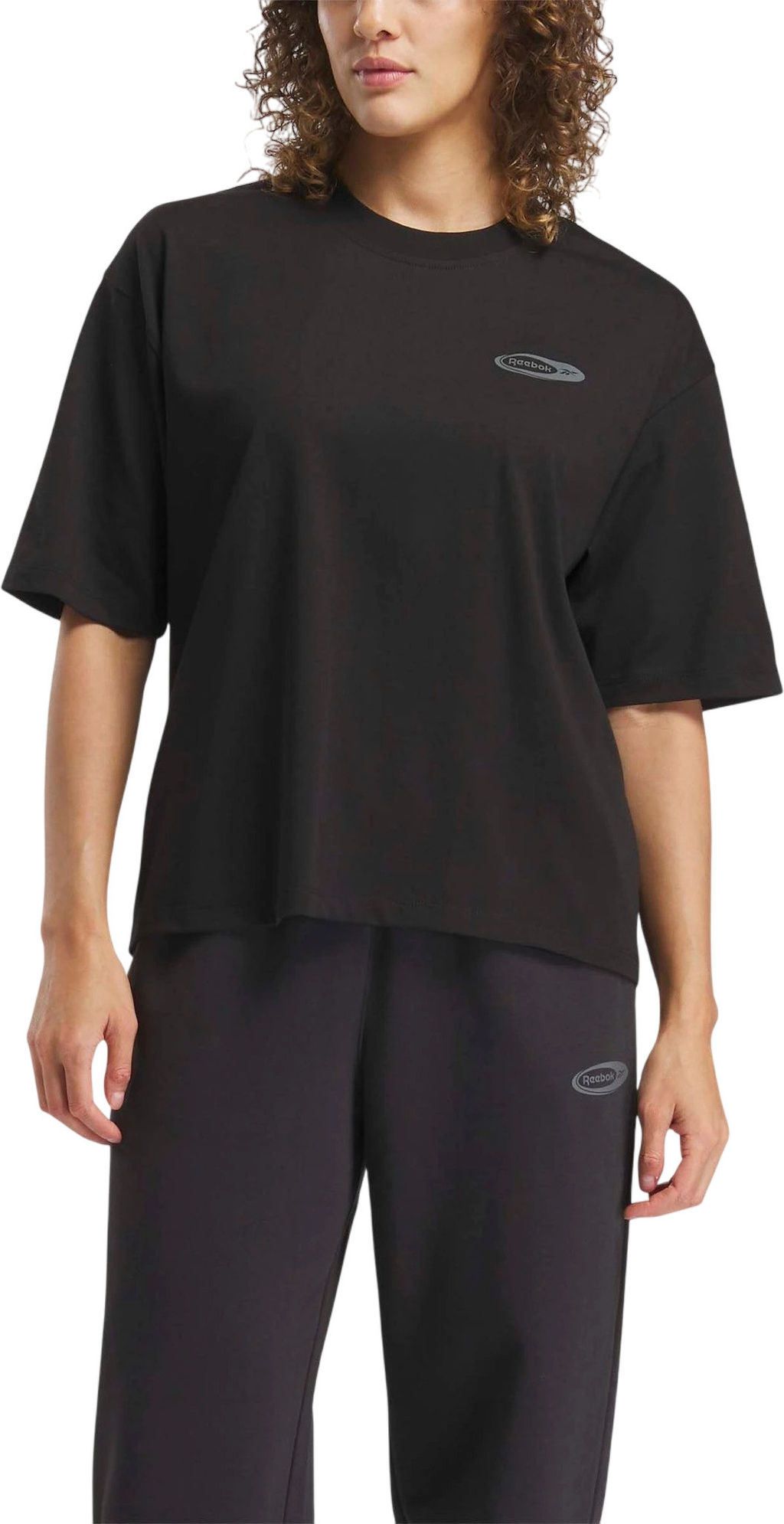 Освежите свои базовые вещи с помощью этой женской футболки. Хлопковый трикотаж приятен на ощупь, а свободный крой и свободный силуэт делают ее универсальной и стильной. Графика Reebok демонстрирует гордость за ваш бренд.