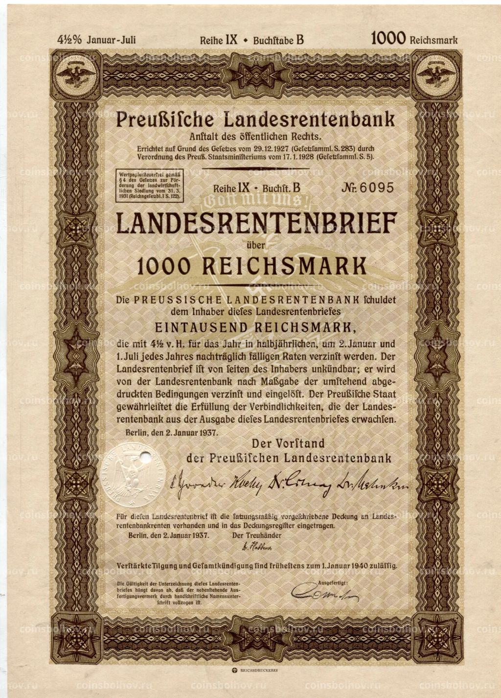 Облигация 4,5% 1000 рейхсмарок 1937 года Германия