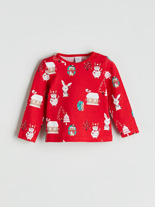 • Bisiklet Yaka Bask?l? K?z Bebek Ti??rt