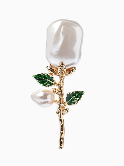 • Брошь «Цветок» роза. жемчуг, цвет белый в серебре