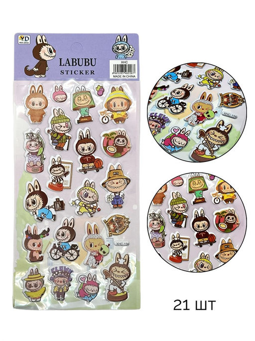 • Цена за 10 шт. Наклейки объемные 21шт. "Лабубу" (XHC-156 / Ig-57)