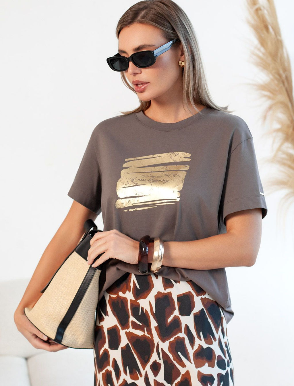 • Нарядная футболка с принтом фольгой из премиального хлопка с эластаном