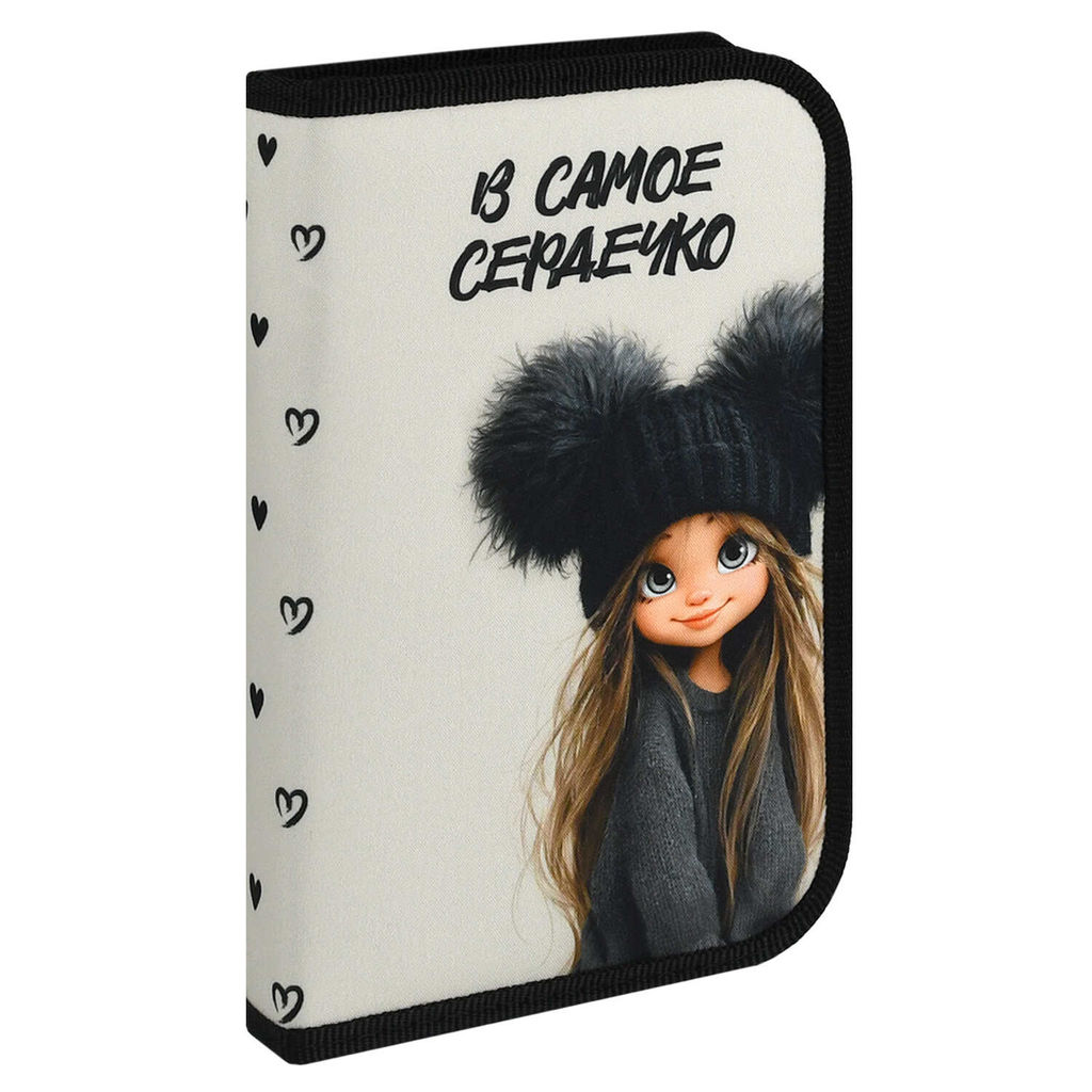 • Пенал школьный Феникс+, арт.72094/ ДЕВЧОНКА В ШАПКЕ (без наполнения, 21,2х13,5х2,7 см, полиэстер,