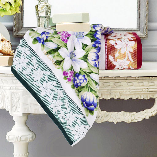 • "Япония-2019" Полотенце махровое 100х150см, плотность 300гр/м2, 100% хлопок, "Лилия", зеленый, Bolangde (Китай)