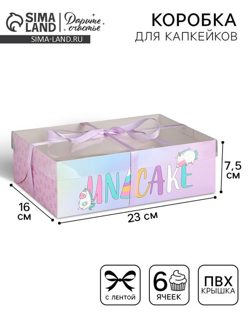 Размер одной ячейки, без учёта выемки под пальцы, 6,5 см. Вид упаковки: Для капкейков. Форма: Прямоугольная. Плотность, г/м: 300. Длина, см: 23. Ширина, см: 16. Высота, см: 7.5. Вместимость, шт.: 6. Тематика: Сказки. Тематика праздника: Универсальная тематика. Вид: Кондитерские коробки. Вид еды: Для пирожных. Бесплатная доставка: Да. Наша разработка: Да. Размеры товара: 16/7.5/23.
