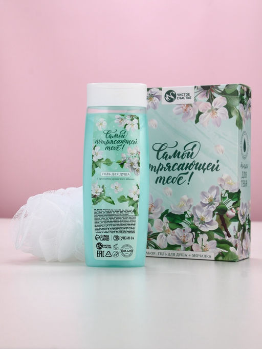 • Подарочный набор «Самой потрясающей тебе», гель для душа 250 мл и мочалка для тела, аромат яблока, Чистое счастье