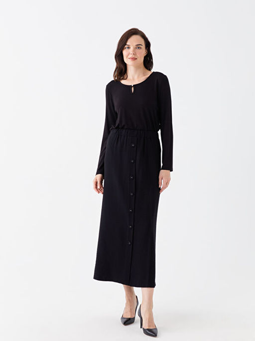 Beli Lastikli D?z Keten G?r?n?ml? Kad?n Etek