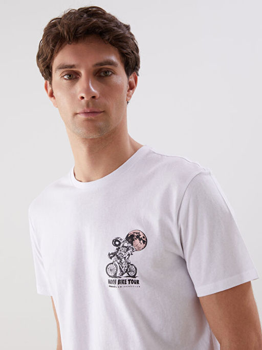 • Bisiklet Yaka K?sa Kollu Bask?l? Penye Erkek Ti??rt