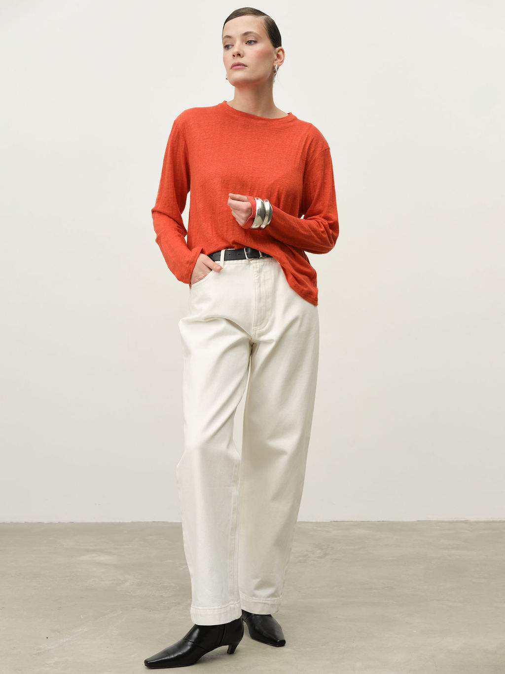 Лонгслив из льна в коралловом оттенке это гармоничное сочетание комфорта и выразительного стиля. Легкая и дышащая ткань делает его идеальным вариантом для повседневной носки, а расслабленный крой обеспечивает свободу движений. Яркий цвет добавляет свежести и динамики в образ.