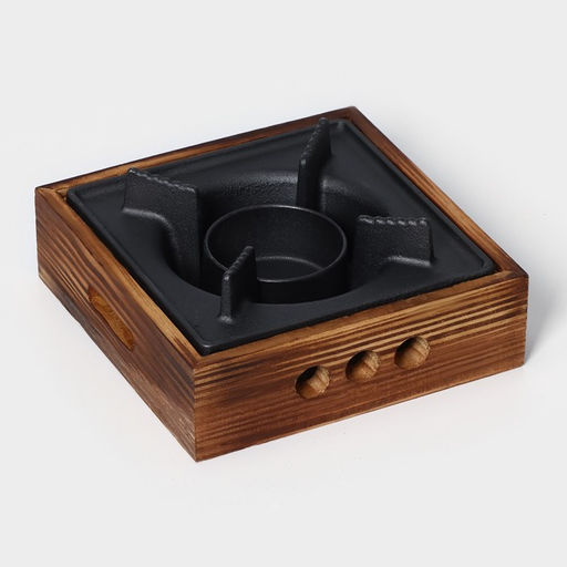 • Подставка для подогрева блюд, 20×20×8 см, с деревянной подставкой
