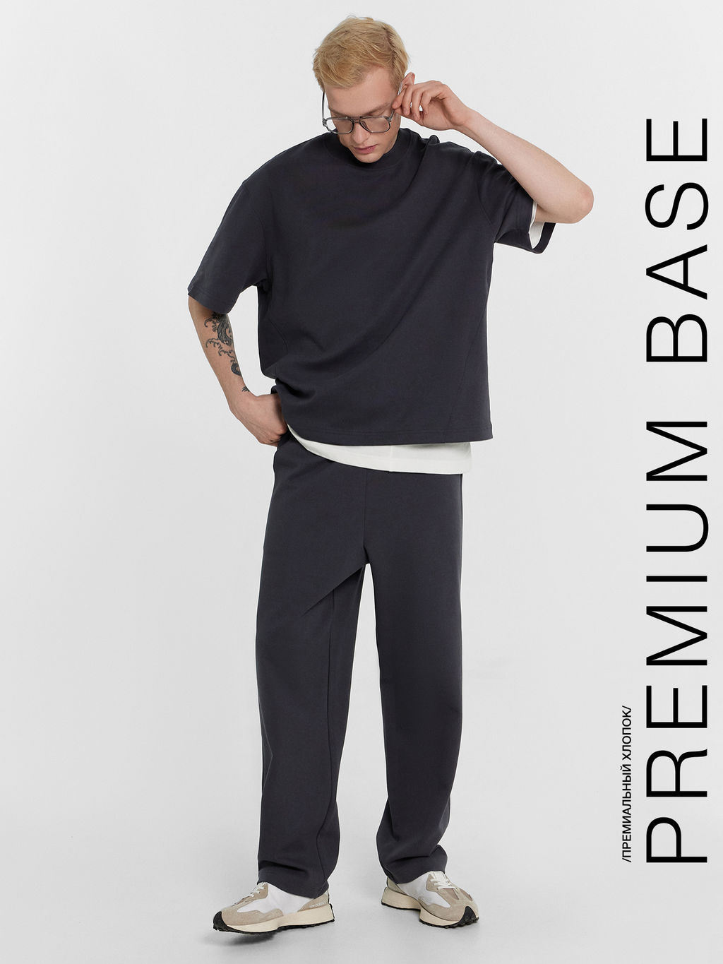 Стильный мужской комплект, который сочетает в себе комфорт и современный дизайн. Для его выполнения использовали высококачественный интерлок, обеспечивающий мягкость и долговечность. Футболка свободного кроя с короткими рукавами и спущенной линией плеча выглядит расслабленно и современно. Круглая горловина и обработка нижнего среза изделия и рукавов швом вподгибку добавляют аккуратности и завершенности образу. Брюки прямого кроя со средней посадкой идеально дополняют комплект. Эластичный пояс на кулиске обеспечивает удобную посадку и легкую регулировку. Боковые карманы добавляют практичности и удобства. Этот комплект идеально подходит для повседневной носки, обеспечивая комфорт и стиль в любое время дня. Добавьте его в свой гардероб и наслаждайтесь качеством и современным дизайном. -- Характеристики -- Состав: 15% полиэстер / 85% хлопок Страна производства: Узбекистан Длина изделия по спинке, см.: 74.5 Длина изделия по боковому шву - низ, см: 107.0 Длина брючин по внутр. шву, см: 74.0 Ширина брючин - низ, см: 22.5 Фактура материала: интерлок Тип рукава: короткие Покрой/ Силуэт: прямой Вырез горловины: округлый Тип карманов: с отрезным бочком Модель брюк: прямые Вид застежки: без застежки Особенности модели: нет Декоративные элементы: без элементов Уход за вещами: деликатная стирка при 30 градусах